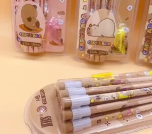 Este set de lápices HB de capybara es perfecto para quienes buscan estilo y calidad. Con 12 unidades por set y 1 sacapuntas